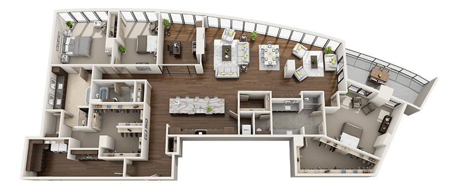 Stacked with beautiful and intelligent finishes, over 20 unique plans at LVL 29 range from 681 to 3588 square feet. Spanning 29 stories to the sky, the variety of superior apartment homes, townhomes, and penthouses ensure you’ll be matched with the perfect space and view for your lifestyle.